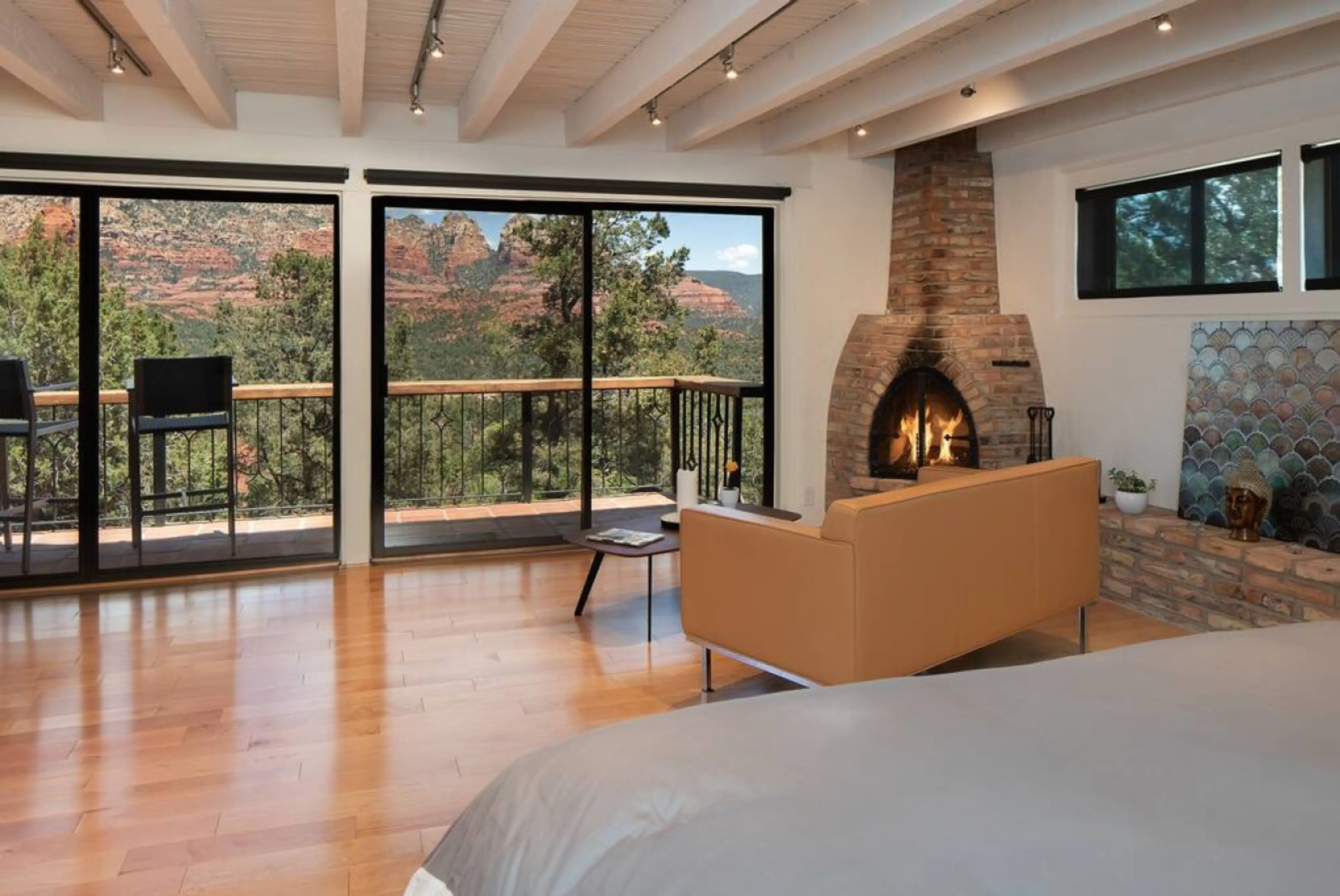 Experience the lovingly restored beauty of this romantic upper-level studio, thoughtfully enhanced with high-quality modern interiors. Revel in the warmth of maple flooring, luxuriate in tastefully furnished spaces, and savor the convenience of a well-appointed kitchen. Cozy up by the inviting kiva ...